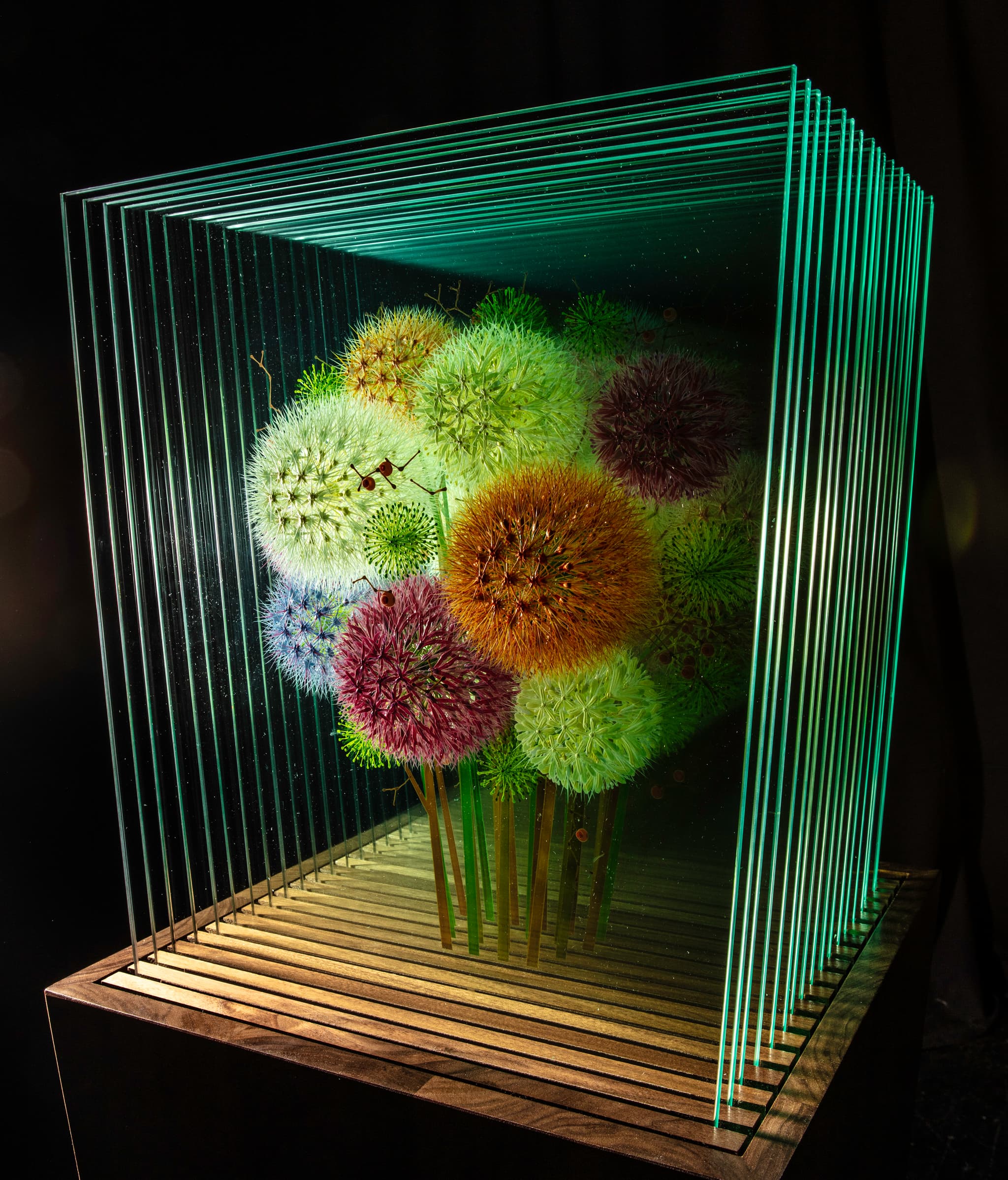 "To Love You the Way I Do" is a unique piece that transcends the boundaries of traditional sculpture, seamlessly blending artistry with the delicate beauty of nature, this captivating glass sculpture captures the illusion of a vibrant bouquet through meticulously hand-painted panels of glass. This creation invites viewers into a world where art and nature coalesce in perfect unity, offering a brief yet captivating glimpse into a timeless garden frozen in graceful splendor.